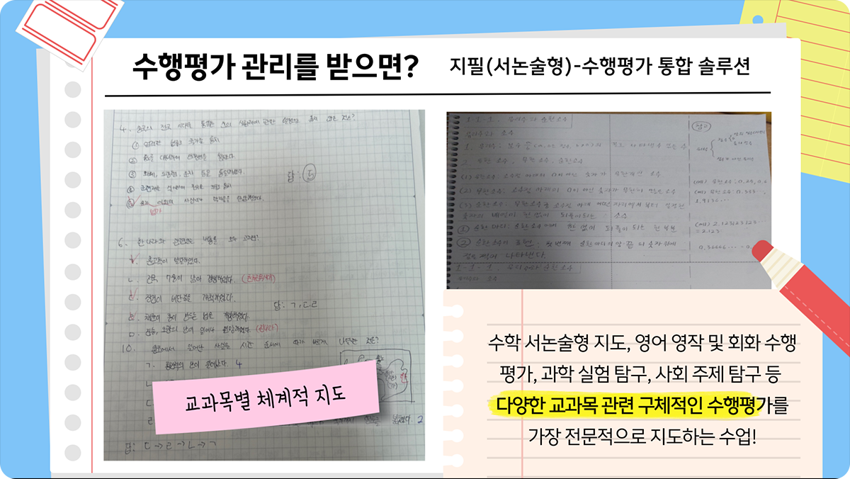 개별 맞춤 전략으로 달라진 수행평가 확실히 대비합니다.